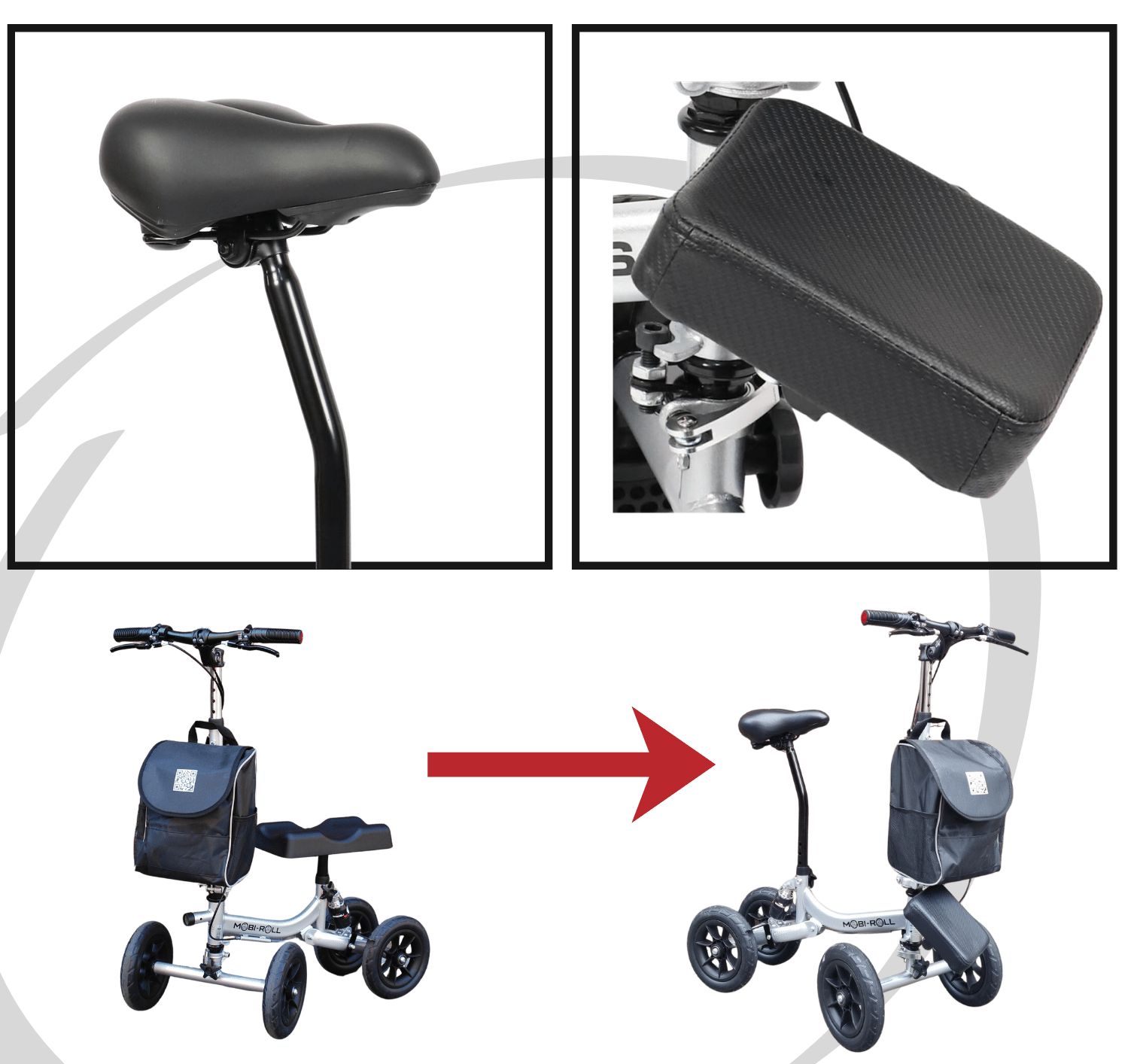 Den Mobi-Roll Knieroller/ Mobi-Roll Sitzroller können Sie online kaufen oder wochenweise mieten – mit der Möglichkeit zur Verlängerung. Sobald Ihr Bein teilweise belastet werden darf, unterstützt der lenkbare Knieroller mit Bremse die schrittweise Steigerung der Gewichtsbelastung.